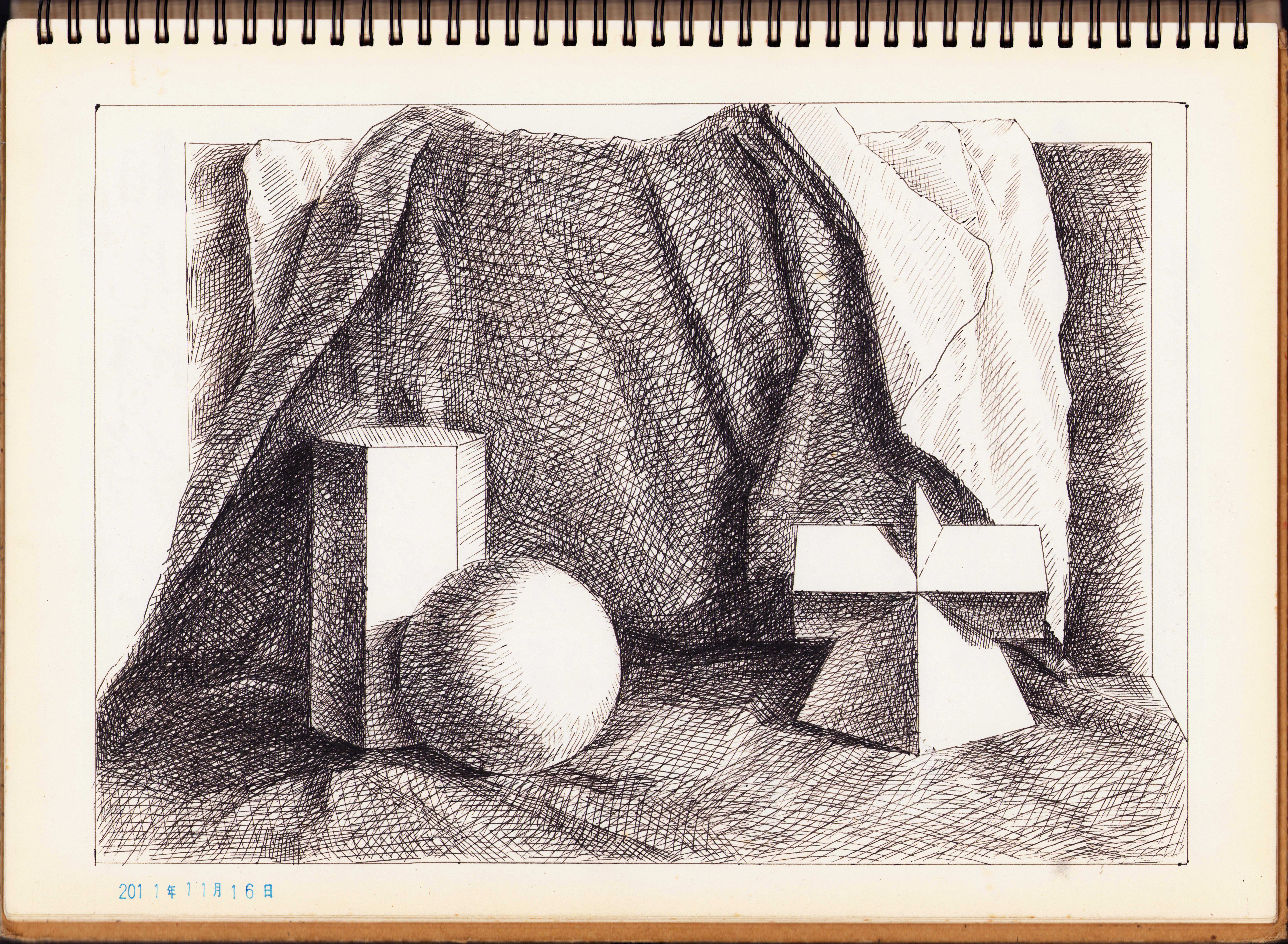 这里呈现的16幅钢笔画,是我画在一本素描本上的练习中挑选出来的,包括透视图、石膏几何体、写生花卉、动植物、工业产品、风景等内容,是课堂给学生作示范用的,大部分都在2013年前所画,教学年级从2010级到2013级。现在,纸张已发黄了,但是还能想起与同学们在课堂上一起度过的愉快时光。发在这里,也算是点滴的回顾与总结,请大家批评指正!