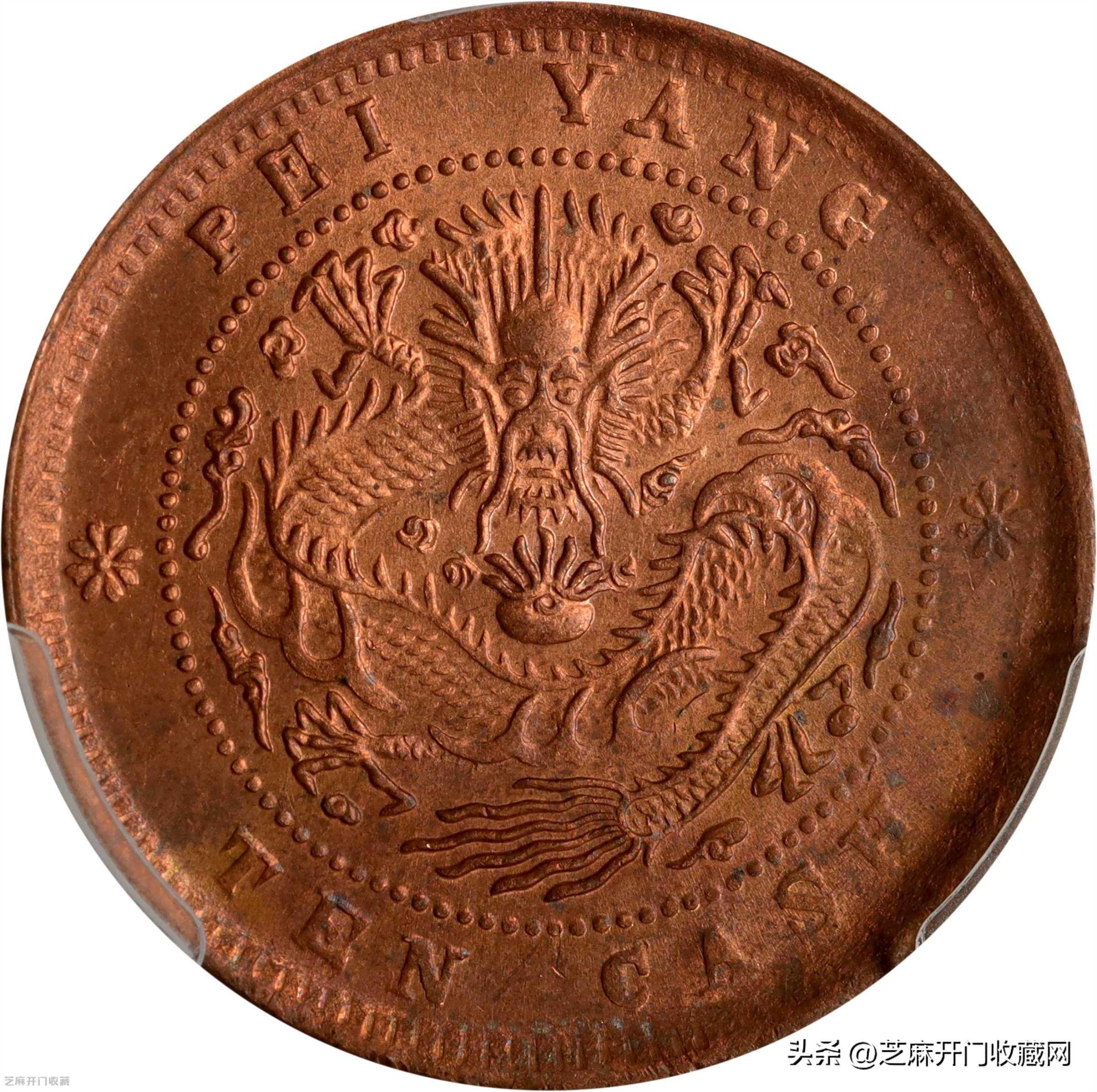 根据之前的一些有关北洋十文的拍卖记录我们能够看到,圆嘴龙在之前的一场拍卖会上成交价格在62,000,有这么高的成交价格是在于他的品相非常的精美,再加上带有木纹质感的色泽,非常的引人注目。还有另外圆嘴龙这品相也非常完美,钱币的整体是范红光的,精美的细节和超精细的打造工艺,最后以53,800元的价格成交。