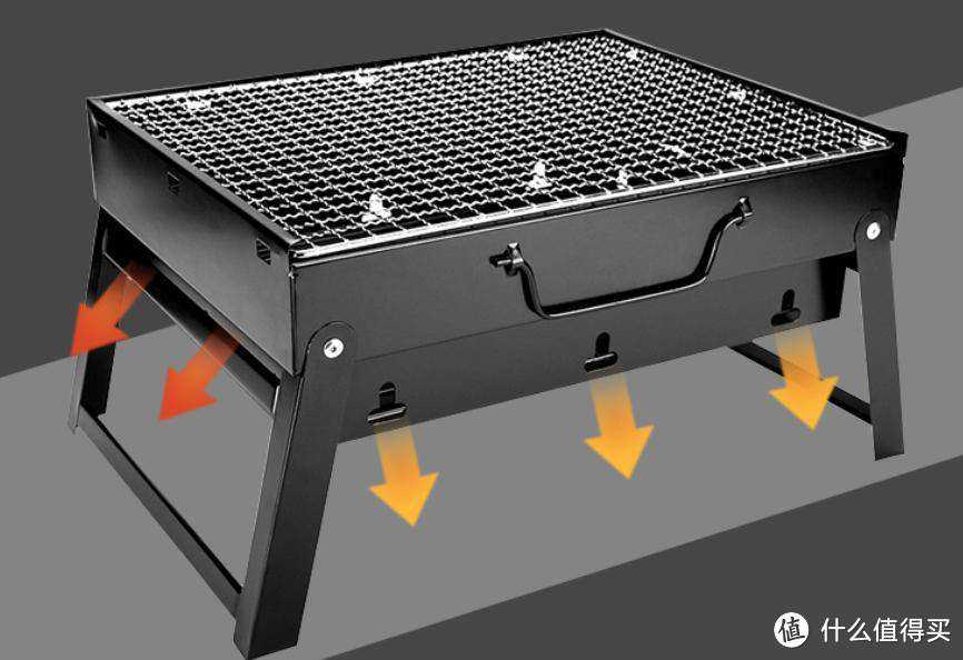 而且四周都有通风孔,可以保持木炭燃烧更充分,而且这样木炭更容易燃烧,不易熄灭。上面的烤网也是可以抽拉的,中途加碳也很方便。