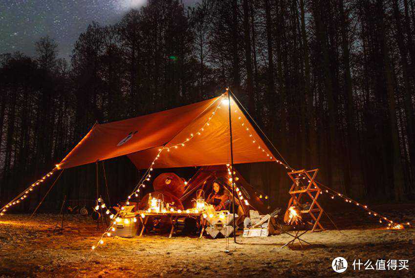 使用的效果直接拉满,真的是太美了,随手一拍,大片的既视感,既调节了气氛,又能提高营地的亮度,需要注意的是一定要固定好,不要被电线绊倒了。