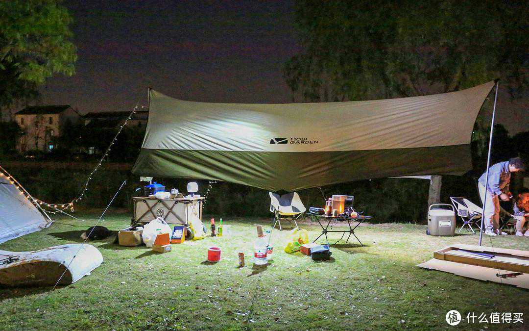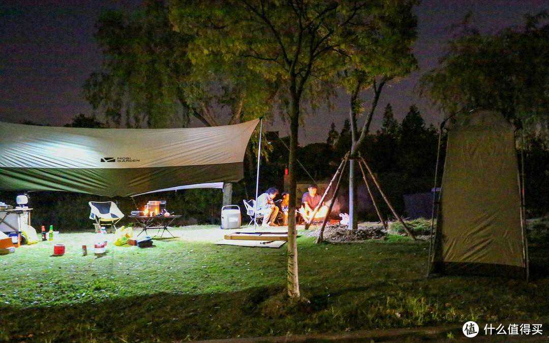 下面是晚上拍的效果,天幕下可以放东西和乘凉,很惬意。