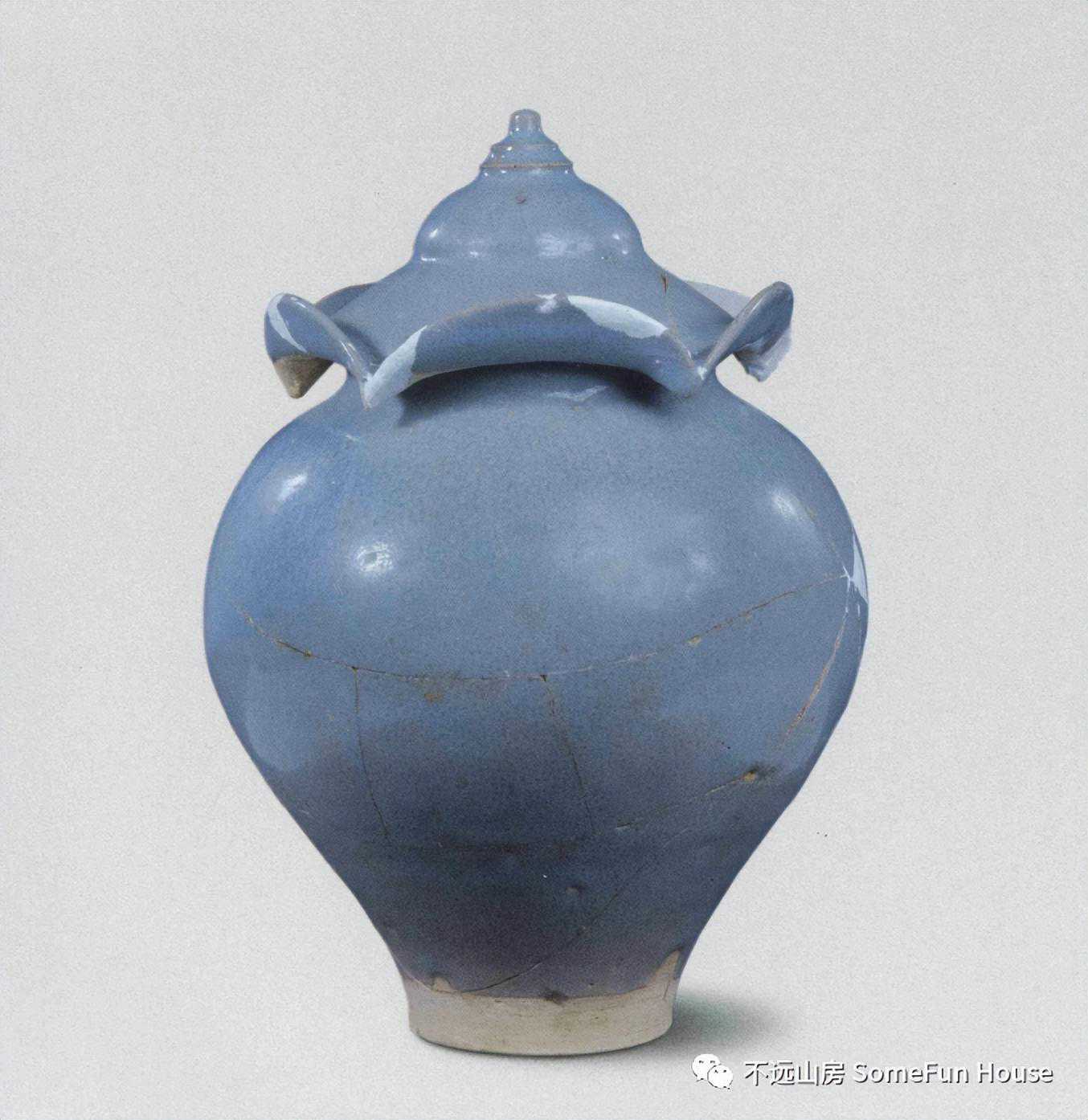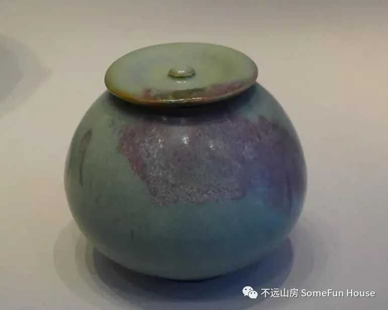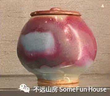 大都会艺术博物馆藏金代钧窑天青釉玫瑰红窑变鸡心盖罐