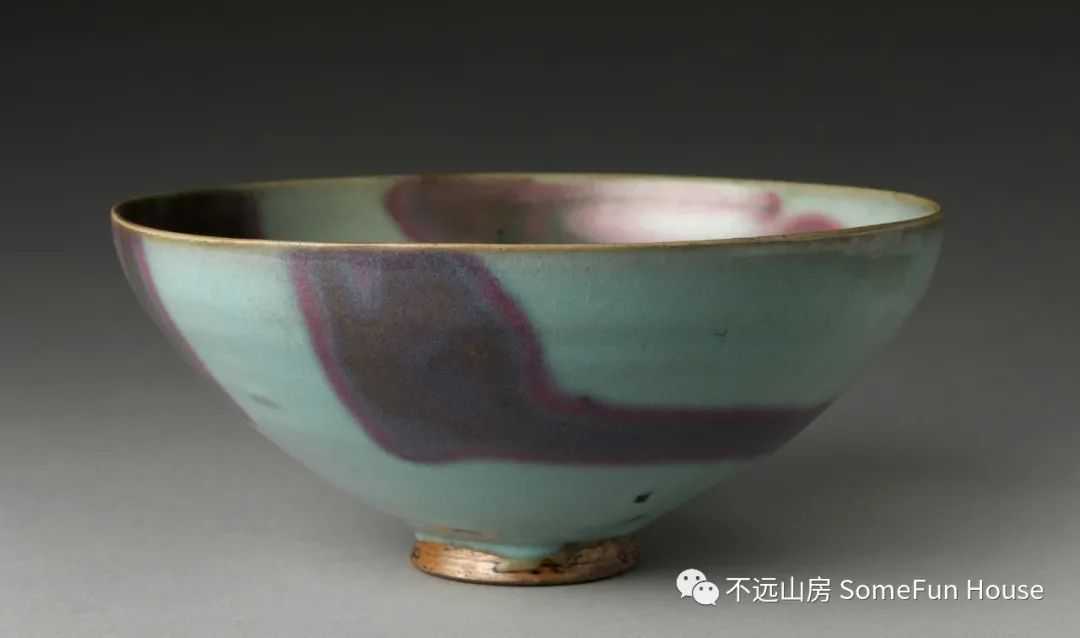 大都会艺术博物馆藏金代钧窑天青釉玫瑰红窑变碗