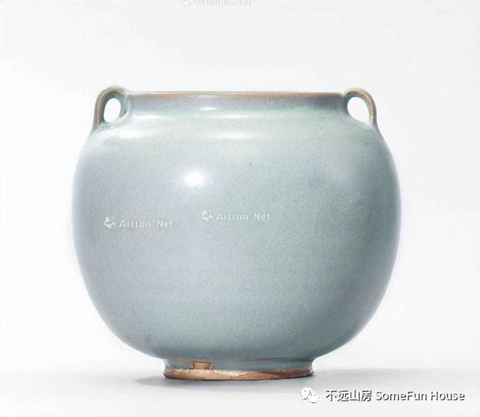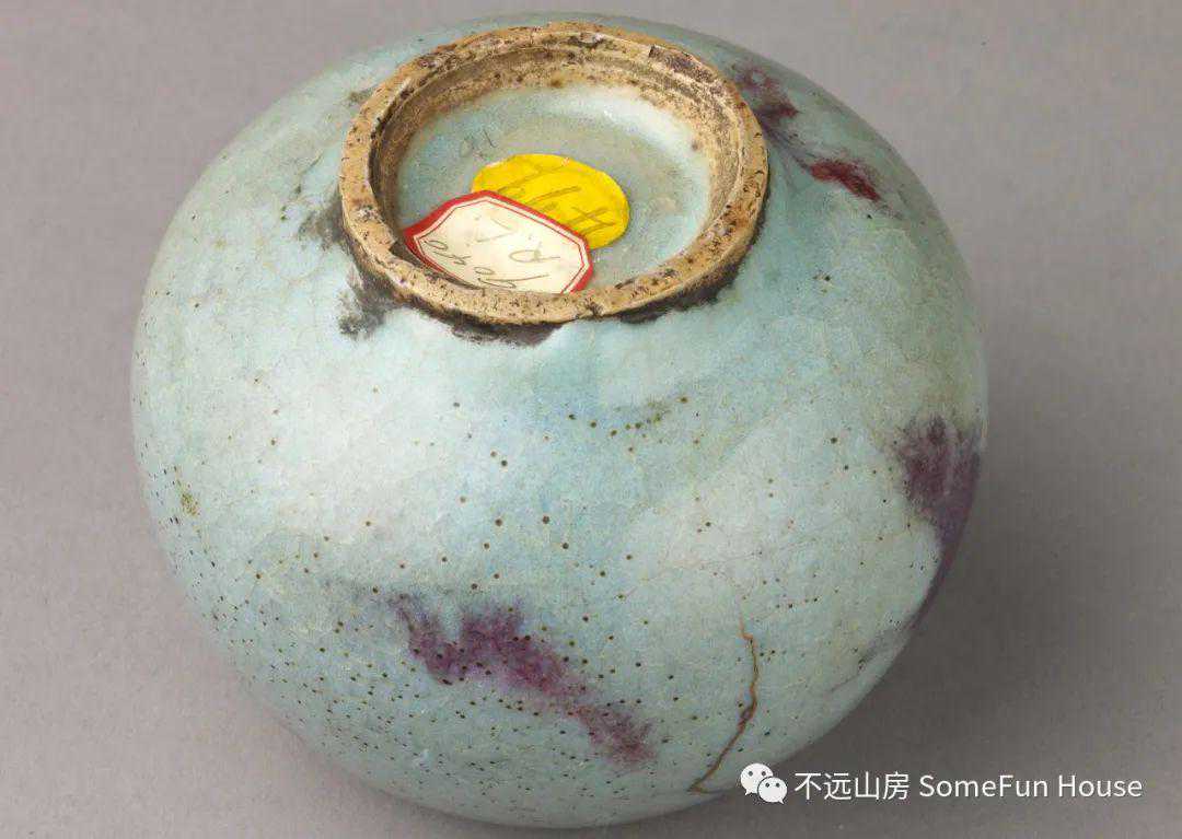 大都会艺术博物馆藏金代钧窑天青釉玫瑰红窑变鸡心罐