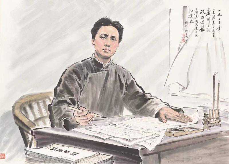 在荣宝斋制作的木版水印作品中,《毛主席去安源》是非常独特的一件。该作品的原作是油画,荣宝斋以木版水印的技艺,用国画颜料将画面印制在绢本上,可见技艺的精湛。郑名川表示,“复制油画的技艺,朵云轩并没有尝试过,此前只尝试过以木版水印技艺复制水彩画作品。”