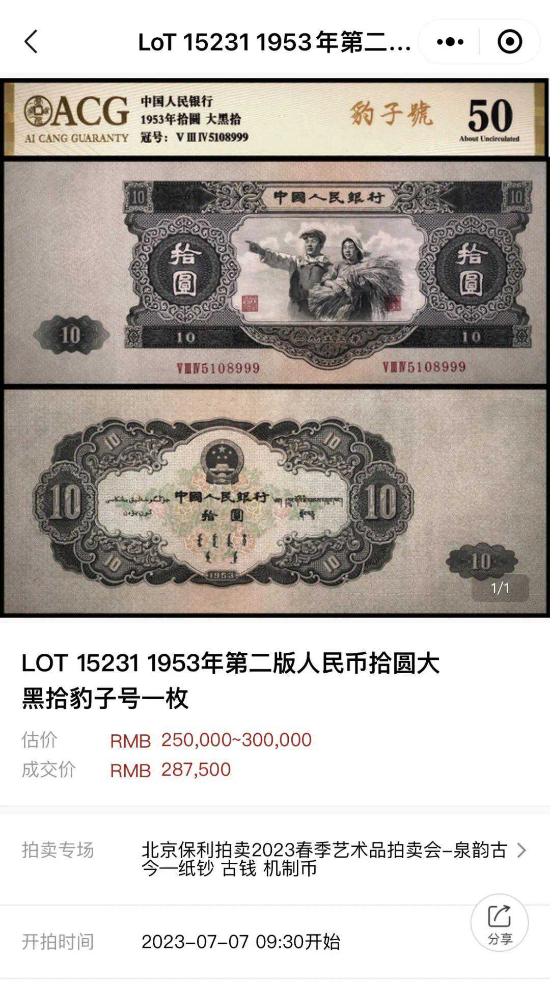 刚刚结束的保利春拍中,一张50分豹子号大黑拾成交价接近29万!