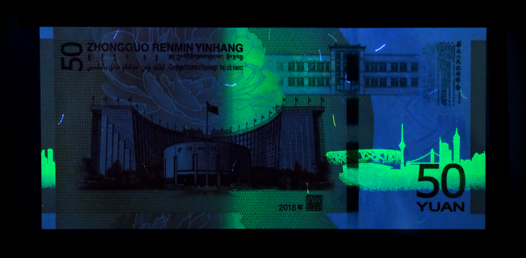 ▲70钞绿牡丹的特殊荧光