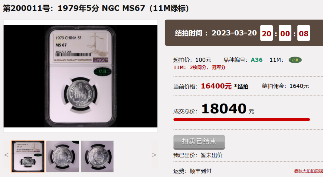 1979年5分,NGC67分,成交价18040元;