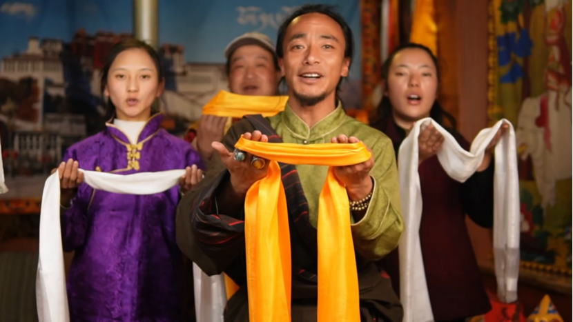 尼玛次仁和同胞们在直播间里表演少数民族特色歌舞