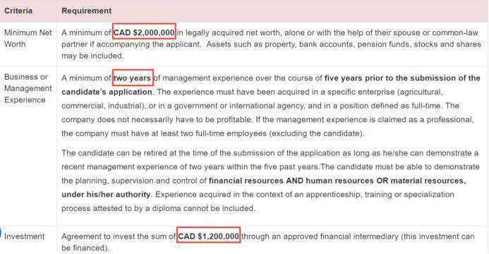 对于在魁北克经济类选择排行榜上得分超过41的个人,进入第一阶段的筛选是一种途径。他们还必须打算在魁北克定居,经营一家由企业家单独设立或与他人共同创建的企业,并已从企业加速器、企业孵化器或大学创业中心的服务提议。