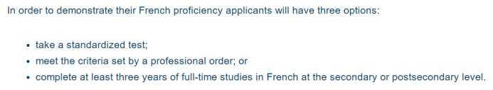 魁北克还宣布了针对法语水平不高的企业家和自雇移民计划的新配额。对于那些能够证明法语口语表达和理解能力达到中级水平的人则没有限制。