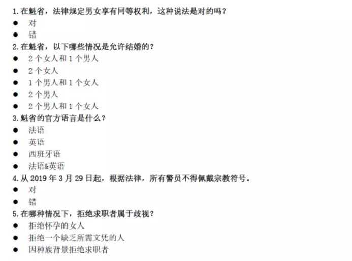 当地时间10月30日,魁北克政府宣布,从2020年1月1日开始,希望在魁北克定居的外国人及家属将必须通过该省《人权与自由宪章》规定的“民主价值观和魁北克价值观”的测试。