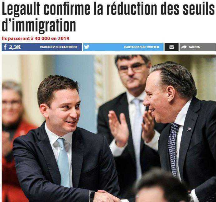 魁北克省的未来联盟党(CAQ)于2018年10月上台,其宗旨是大幅削减魁北克省的移民人数,并以法语测试移民的价值观和能力。