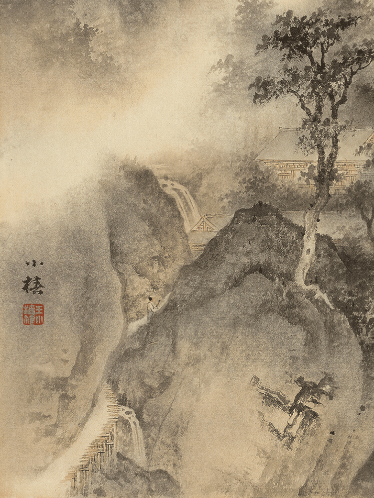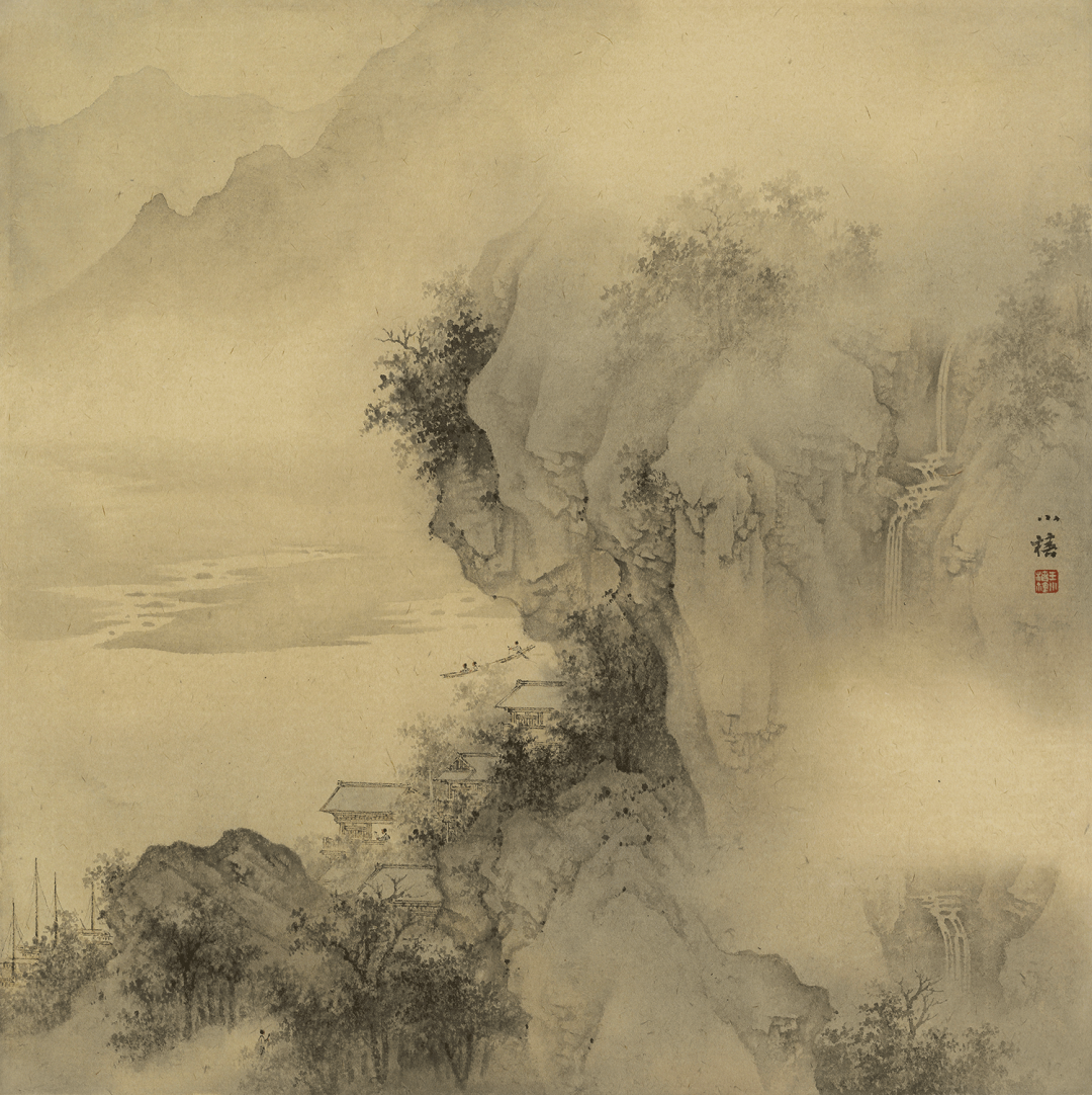 江岸飞瀑图-纸本-35x35cm-2020