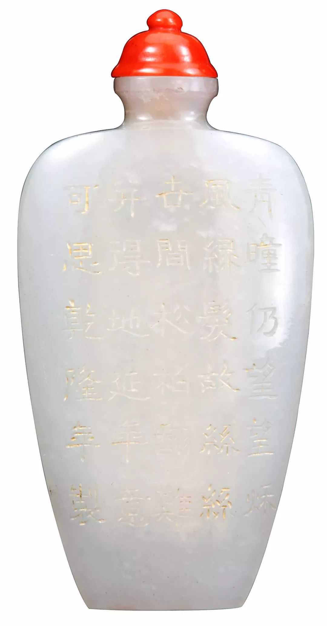 清宫白玉的选材,多为新疆和田玉。玉石在其最初形成过程中,肌体内往往夹杂许多金属矿物质,这使得绝大多数玉石都拥有不同的色彩,纯白无杂色的白玉少之又少。从传世的清宫多数玉雕制品来看,青玉、碧玉等玉雕数量较多,体量较大,且众多大件成品也完全是青玉、碧玉雕成,洁白纯正的白玉制品则绝少有特大件器物。至于色白质纯的羊脂玉,因原来自身体量就小,外部往往包裹彩色玉皮,故大多只能雕成佩饰、首饰、鼻烟壶等小件物品。