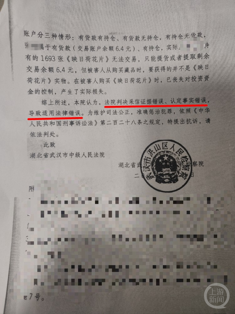 上述无罪判决出炉后,洪山区检察院向武汉市中院提出刑事抗诉。抗诉书开头写到:洪山区法院判决采信证据错误、认定事实错误、导致适用法律错误。