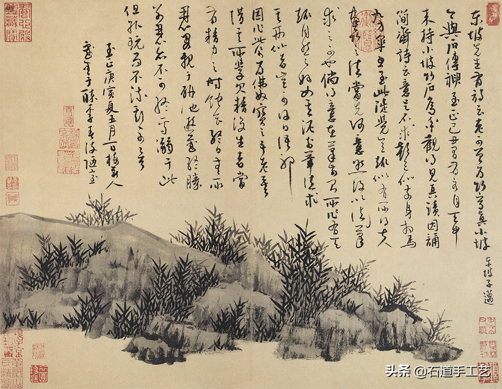 吴镇山水学巨然,为后世留下许多山水画名作,墨竹宗文同,俱臻妙品。这册为其子而画,诸态悉备,可谓墨竹画之集大成。每幅均见其识语,从中可领略吴镇书法之风采。