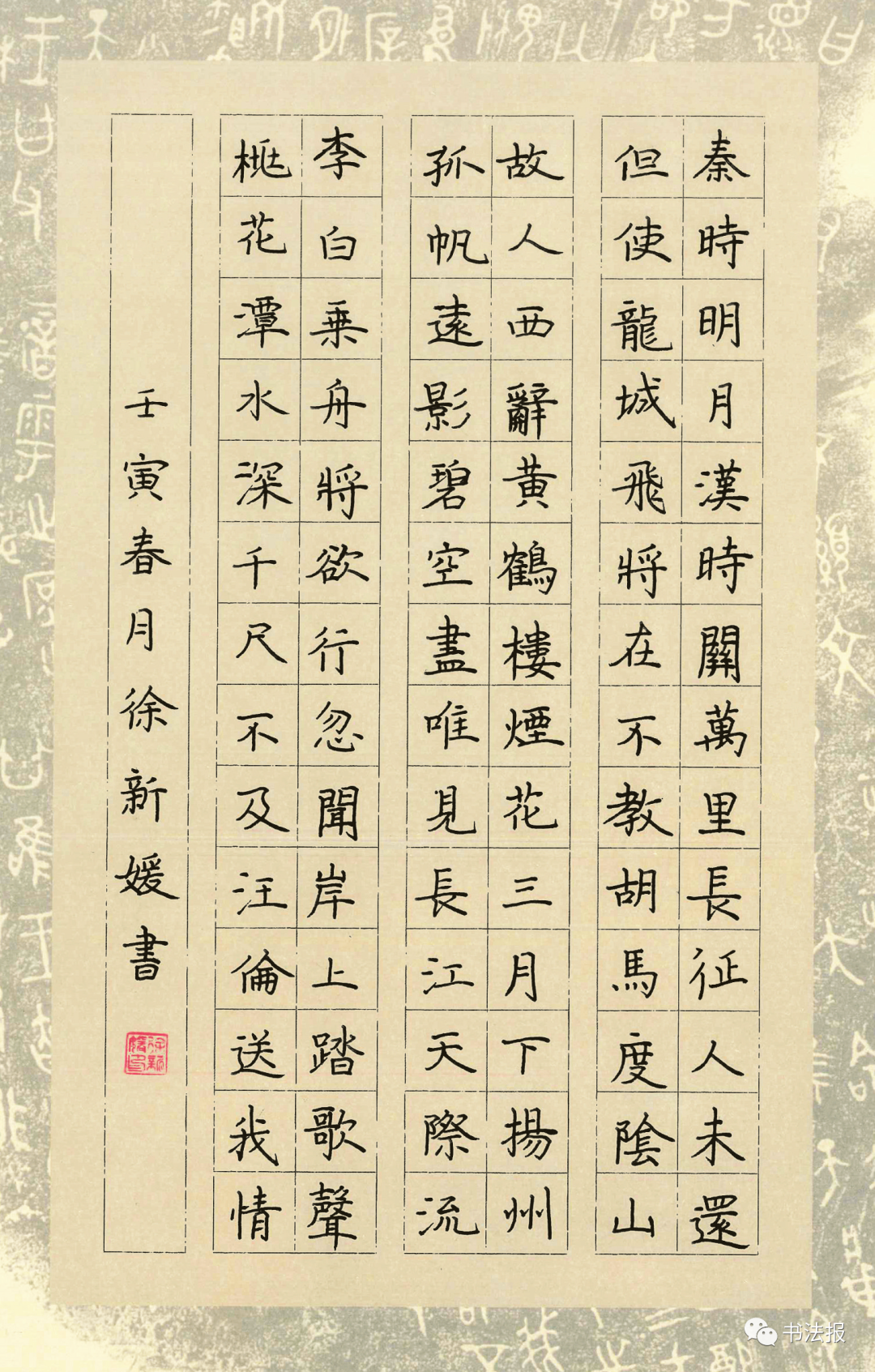 就读于江苏省丹阳市正则小学。作品曾获“华夏万卷杯”第十三届全国中小学生硬笔书写大赛暨2021年现场总决赛特等奖,丹阳市正则小学2021年“第十五届科技文化艺术节”书法现场总决赛一等奖。
