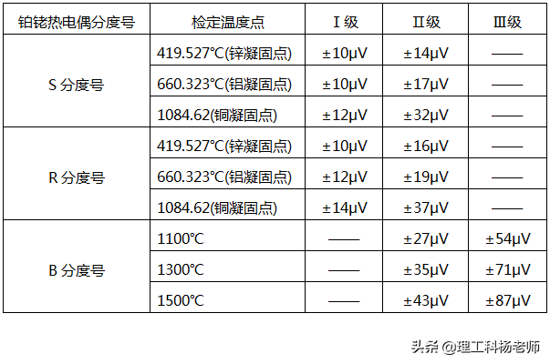2、铂铑热电偶分度号精度等级
