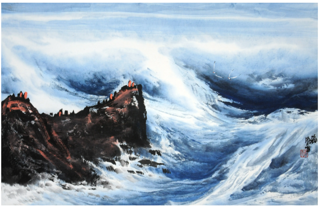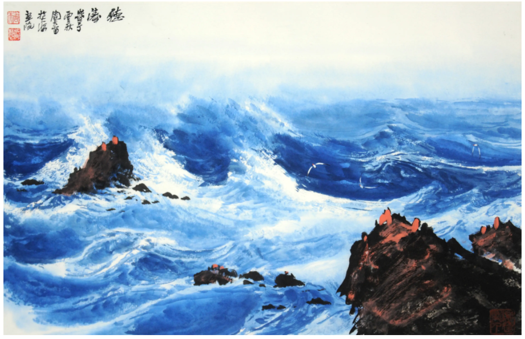 没有人不喜欢大海,变化无穷的蓝色海洋总是高深莫测,喜欢虽多却无人能够淋漓尽致地表现它。此前在我国书画史上还没有一位真正从事画海的名家,直到画家周智慧的出现,不仅改变了这一局面,也让大海成为了他的代名词。