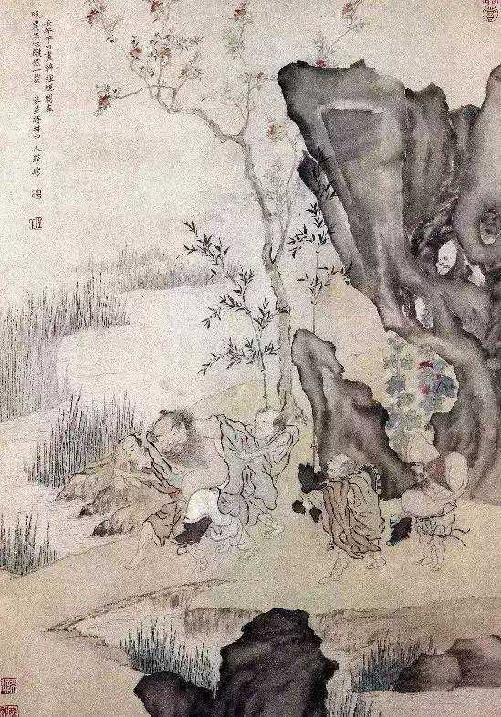 陈洪绶《米芾拜石图》