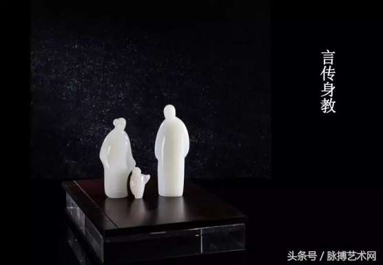 作品采用和田玉作了幸福的一家三口,父母是孩子的榜样,传承传统的教育理念,运用现代的表现手法,以简单的面来概括人物的形象,栩栩如生。