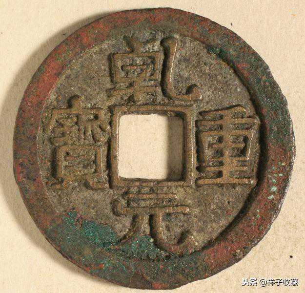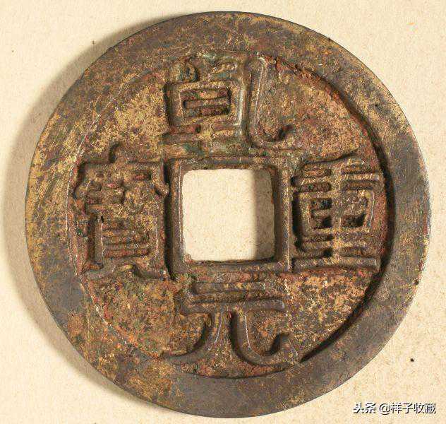 唐乾元重宝当十钱始铸于乾元元年(758年),乾元二年又始铸乾元重宝当五十钱,2种乾元重宝都有减重的小钱。