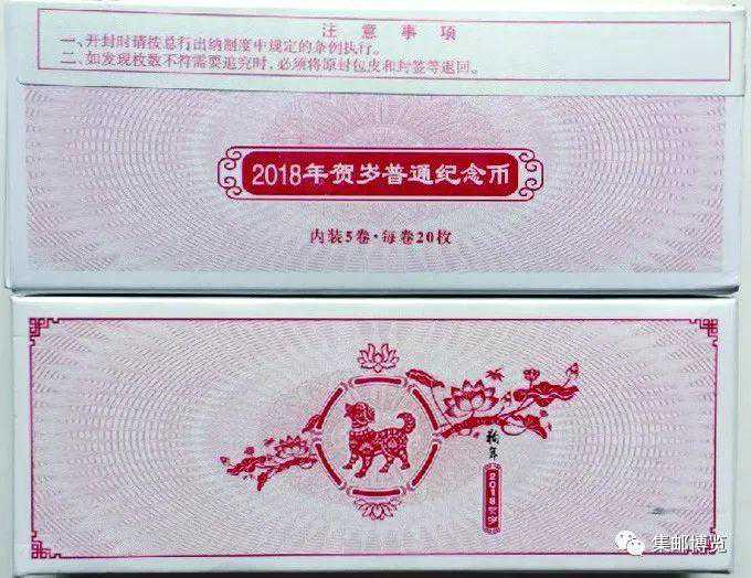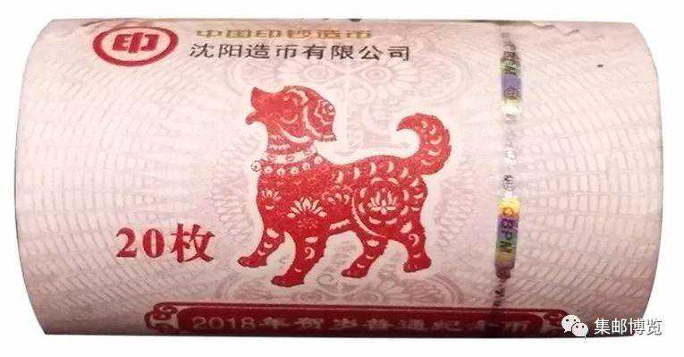 该贺岁纪念币的整卷包装也很精致,印有与《戊戌年》贺岁纪念币背面主图一致的小花狗图案及“中国印钞造币上海(沈阳)造币有限公司”、“20枚”、“2018年贺岁普通纪念币”字样等,背景为纸币所特有的底纹团花图案,主色调为红色。整卷包装纸的偏右侧部位自上而下包含有金属防伪线,防伪线上印有“CBPM”(“中国印钞造币”)字样及公司标识的镭射防伪,其中的“CBPM”字样是互相颠倒交错排列的。金属防伪线大大增加了卷币的防伪性,可以有效防止“后卷币”的行为。