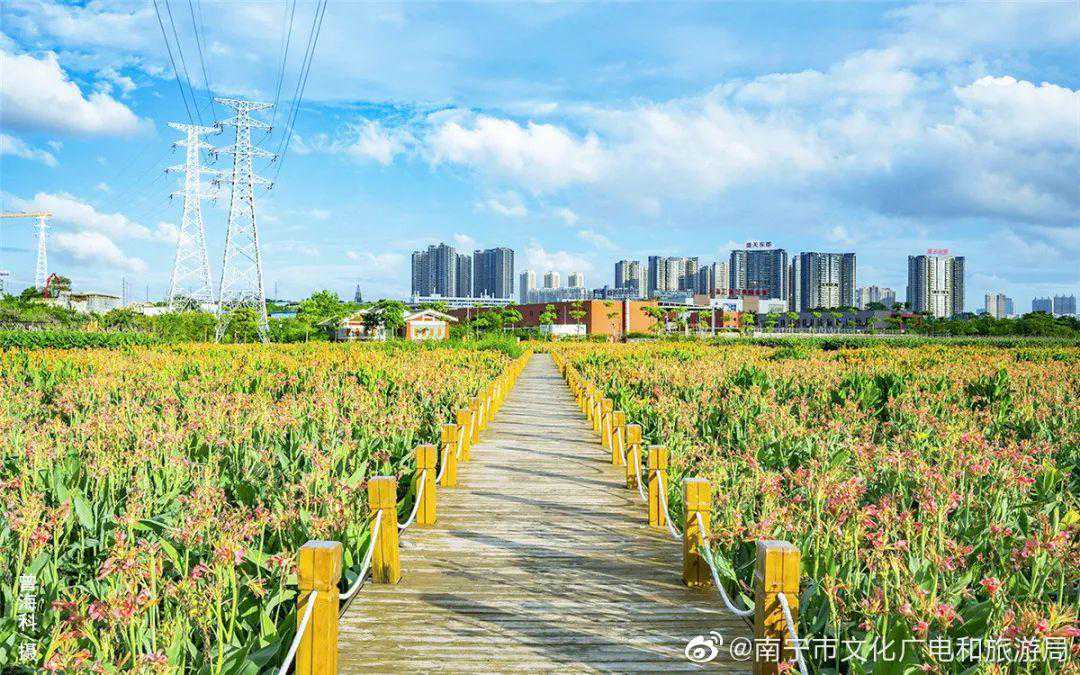 两岸花红翠绿,水车悠悠转动,一江碧水流向远方,这就是南宁那考河湿地公园。美丽的风车、成片的美人蕉花海,鸟语花香、道路干净整洁、吸引了许多市民在此散步和休闲娱乐,是市民周末休闲放松的好去处。