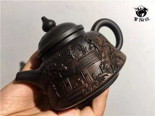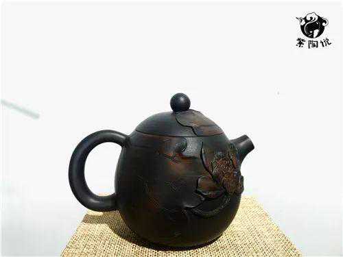陶类常见的雕刻方法是阴雕或者浅浮雕,平面感较强,更多地是利用绘画中的描绘手法来造成较抽象的压缩空间,其更大程度地接近于绘画形式。但堆雕造型是整体浮突于陶器表面,使陶器表面形成凹凸分明的浮雕且具有立体美感,这样的紫陶壶手感具佳,给人一场与众不同的视觉盛宴,从而收获无与伦比的艺术享受。