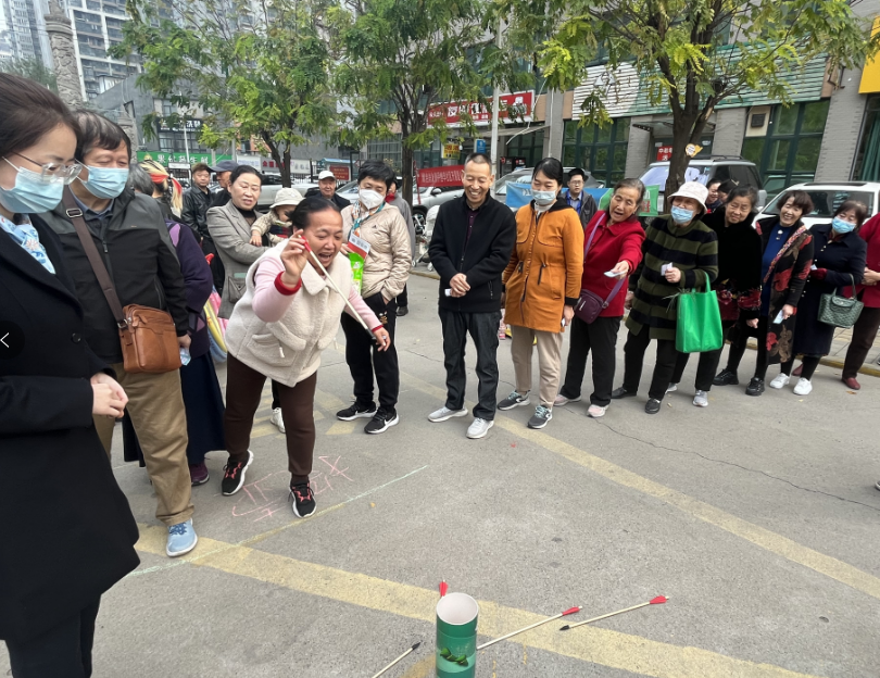 老年人趣味运动会是以主要比赛内容的体育活动形式,比赛项目具有趣味性、简易性、安全性和运动性等几个方面。通过老年人趣味运动会,丰富老年人的晚年文化生活,让他们参与到集体活动来,体验趣味活动带来的快乐,锻炼了身体,又使他们不至于缺少关怀,缺少集体活动而感到孤独。当天活动得到社区老年人积极响应和参加。在投壶,套圈,原地跳格等项目排起了队伍。全程参加的老年人还获得了奖品。