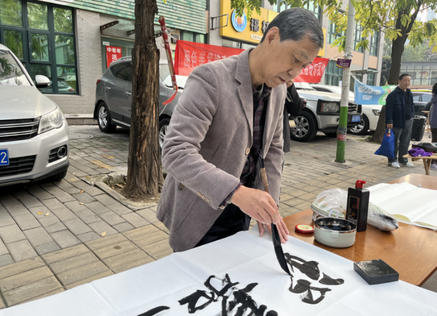 当天,恒丰社区还在现场组织了医疗义诊,义务剪发,环保宣传等项目。农工党陕西省政协支部党员姚西鸣为爱心企业和群众题写了书法作品。百邦公益和莱安业主为活动提供了丰富的奖品。