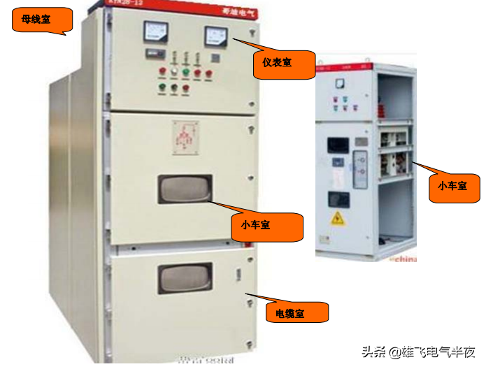 中置柜四室:仪表室、母线室、小车室、电缆室