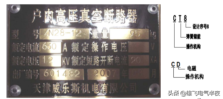 一次熔断器:XRNP1-12,额定电流0.5A,极限开端电流50KA。