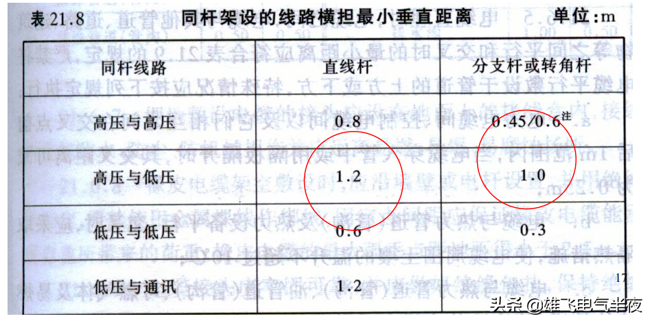 十四、同杆架设的线路横担最小垂直距离