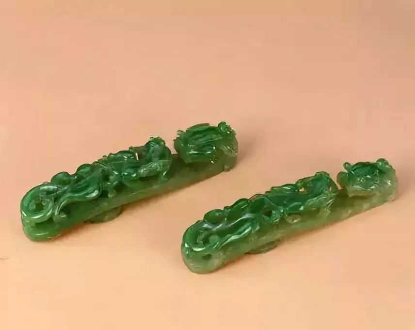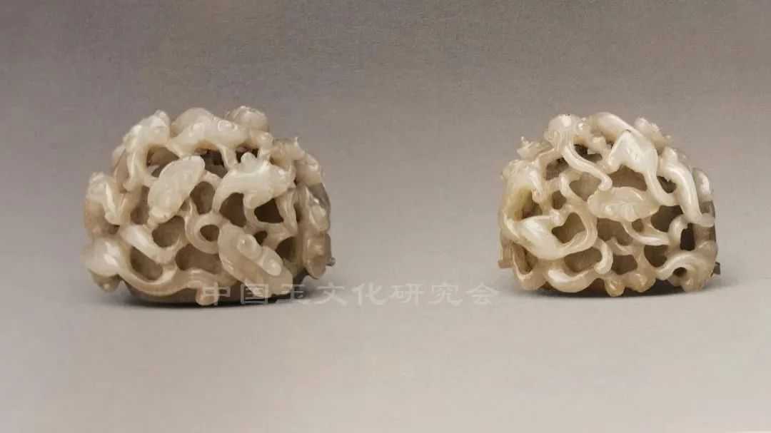 透雕两只螭虎,大眼独角,纹丝形尾.
