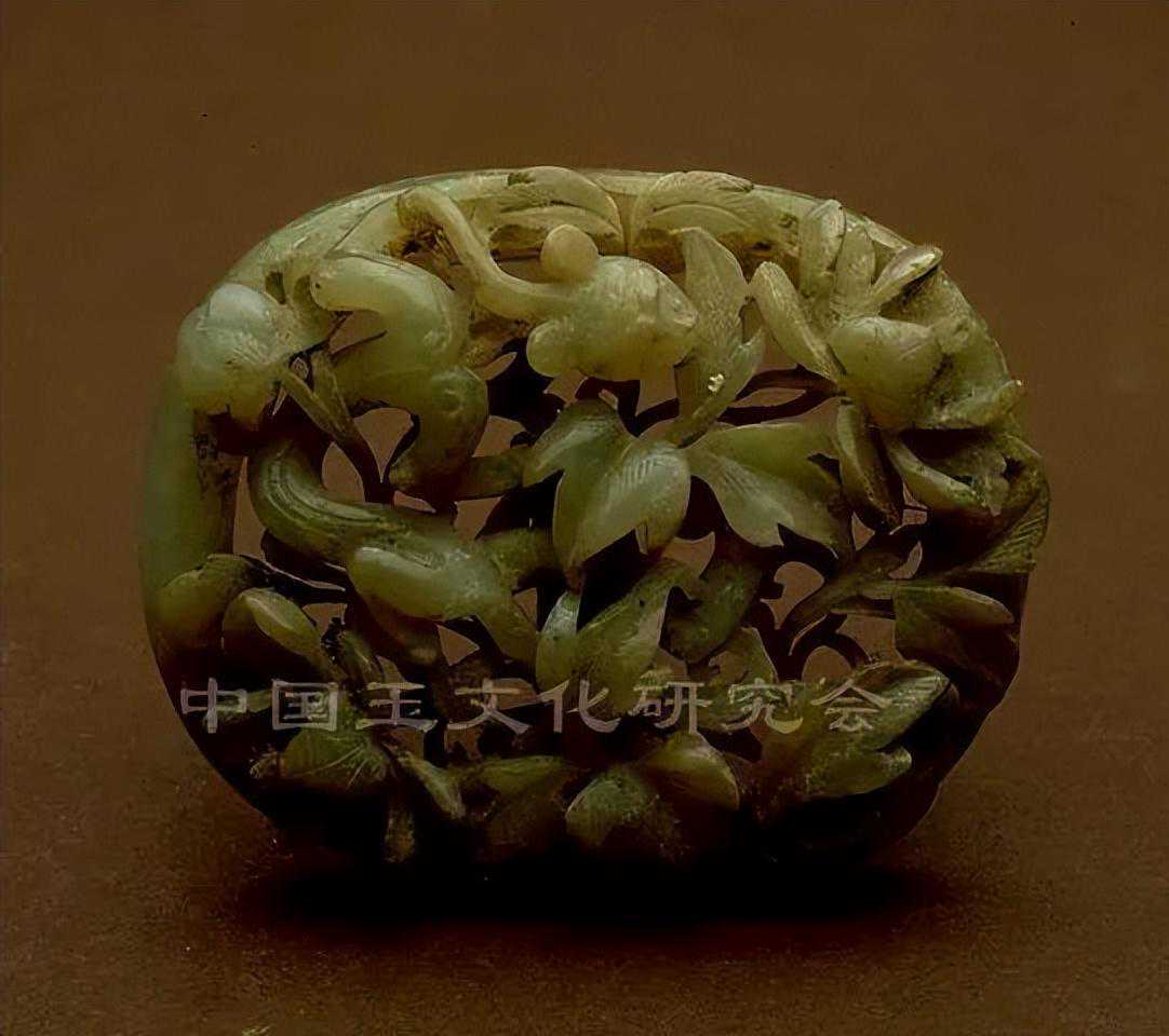 中间镂雕一盘曲的螭虎。螭虎双面以阴刻线条琢刻,形象生动简朴。