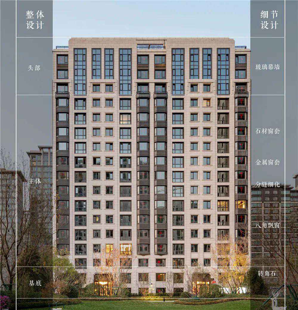 大都会风格具有一种永恒的美感,非常契合项目的特质。在确定风格之初,弘石团队开始反复推敲适用于建筑的黄金比例,并细化随之产生的细节设计。我们深知,细节,一旦设计得成功,便不再是装饰,它将作为建筑固有的一部分,引导人们去理解整体。