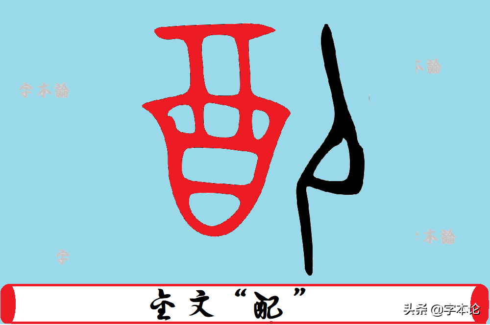 说"配""配"字产生较早,其甲骨文金文形体如下: