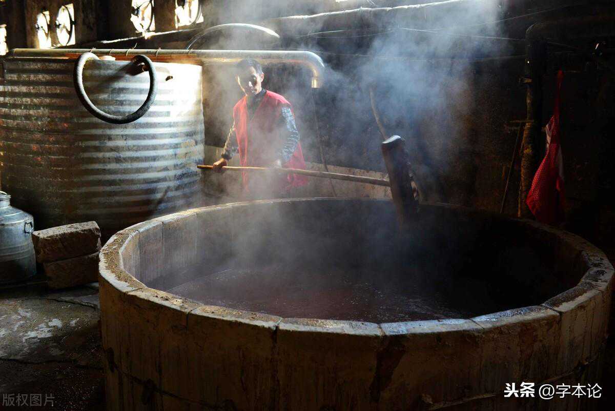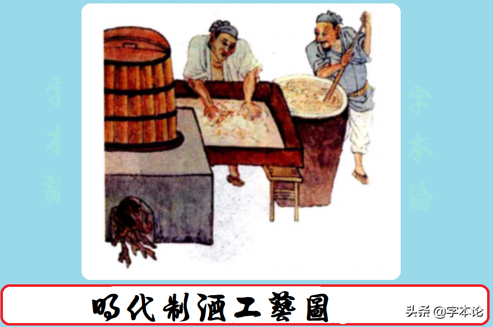 酿酒是一个复杂的过程,即使如今我们也同样延续先人调制酒的一些必要工序。初成之酒浆成色、浓淡并非人们所要求达到的程度,于是,先人也想出了一些办法,从发酵时间的长短、添加成分配料(或是药材等)多少等方面对酒进行调配。而这种对酒进行调制、添加配料的做法只是辅助性的,因此后来有"配料""配制"之说。许慎《说文》释为"酒色",如今看来并不太准确。