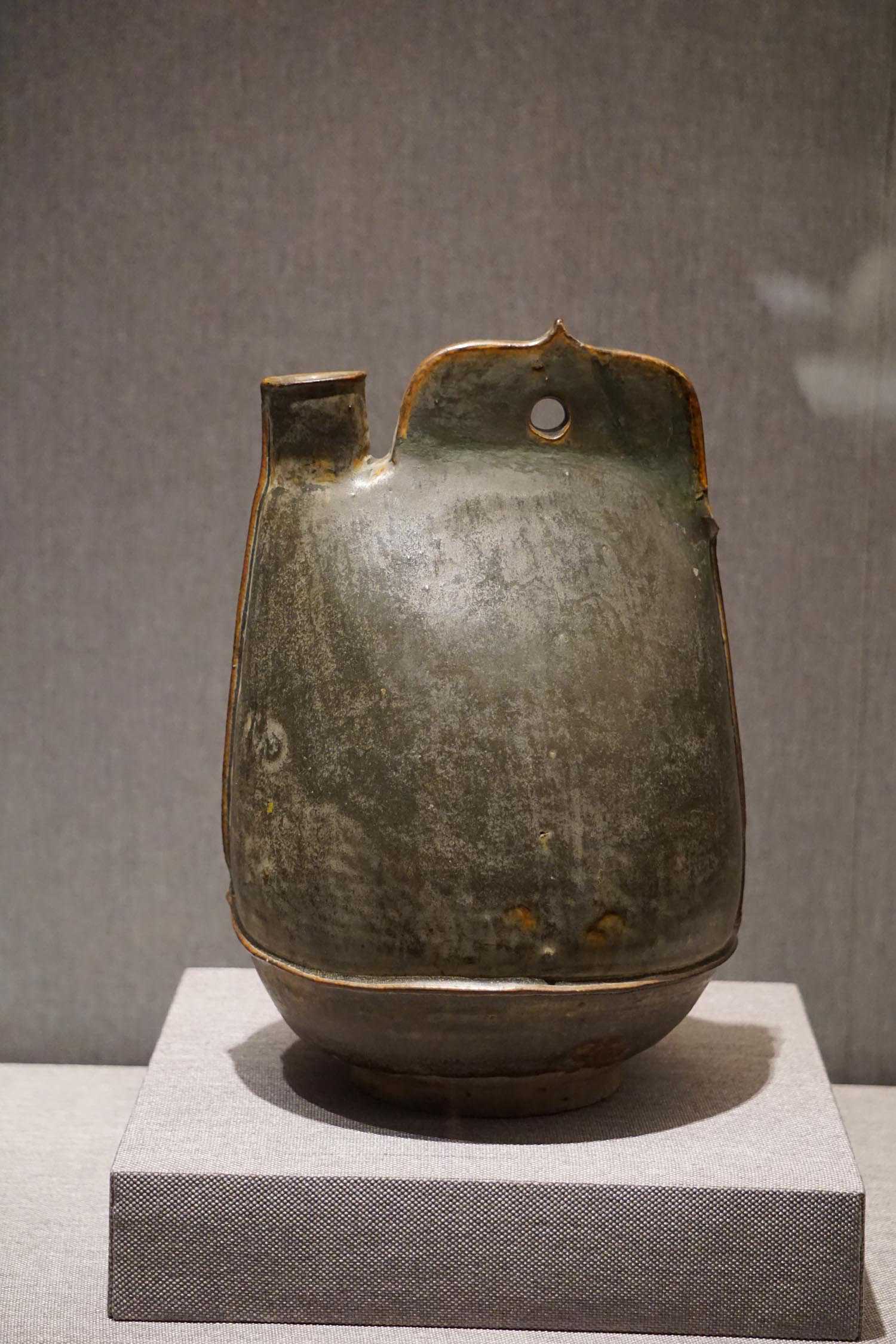 茶末绿釉单孔鸡冠壶辽辽宁建平叶柏寿出土
