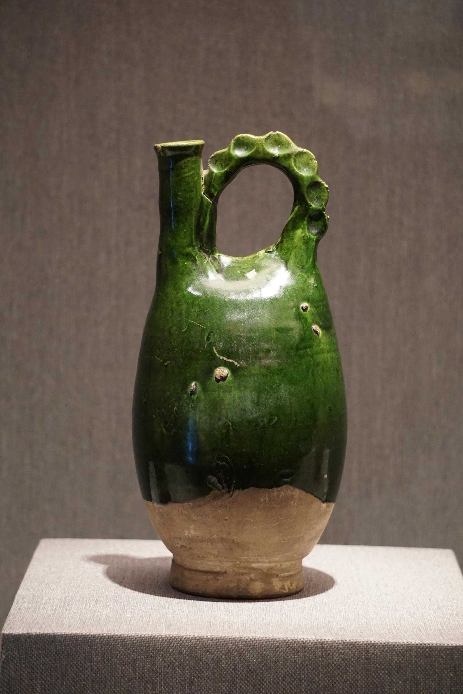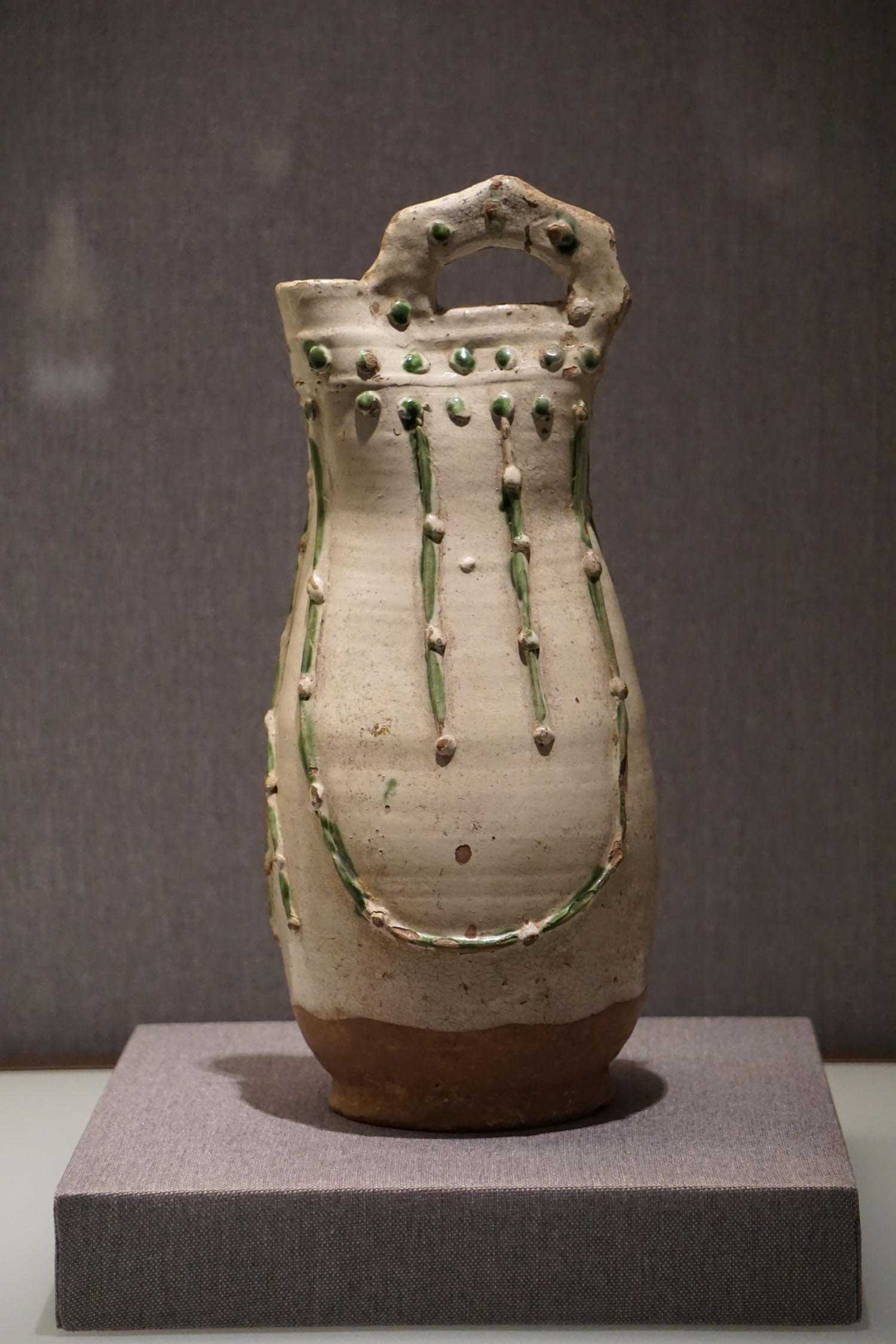 绿釉印篦点纹执壶辽
