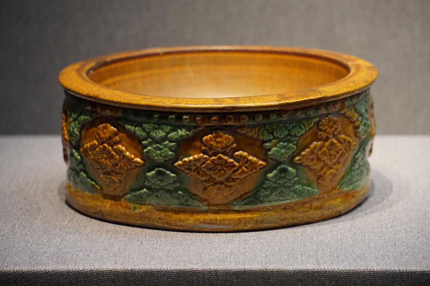 白釉绿彩划花盆辽