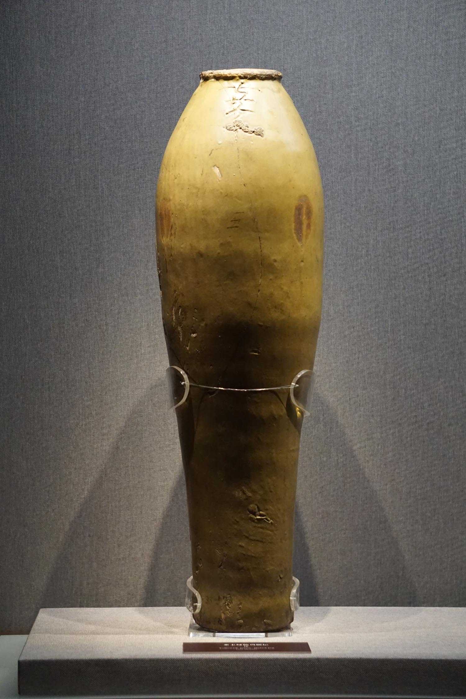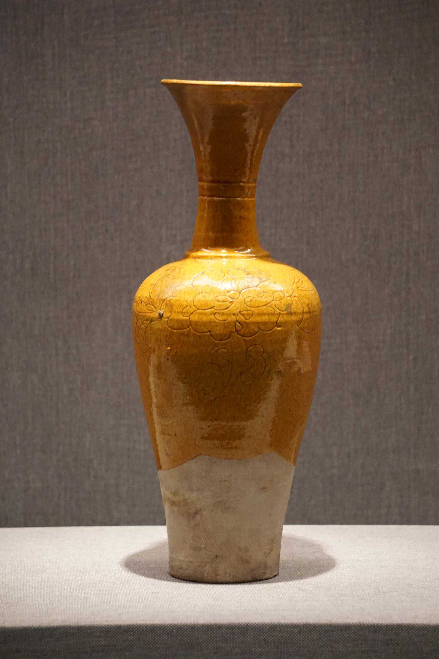 黄釉划牡丹纹长颈瓶辽