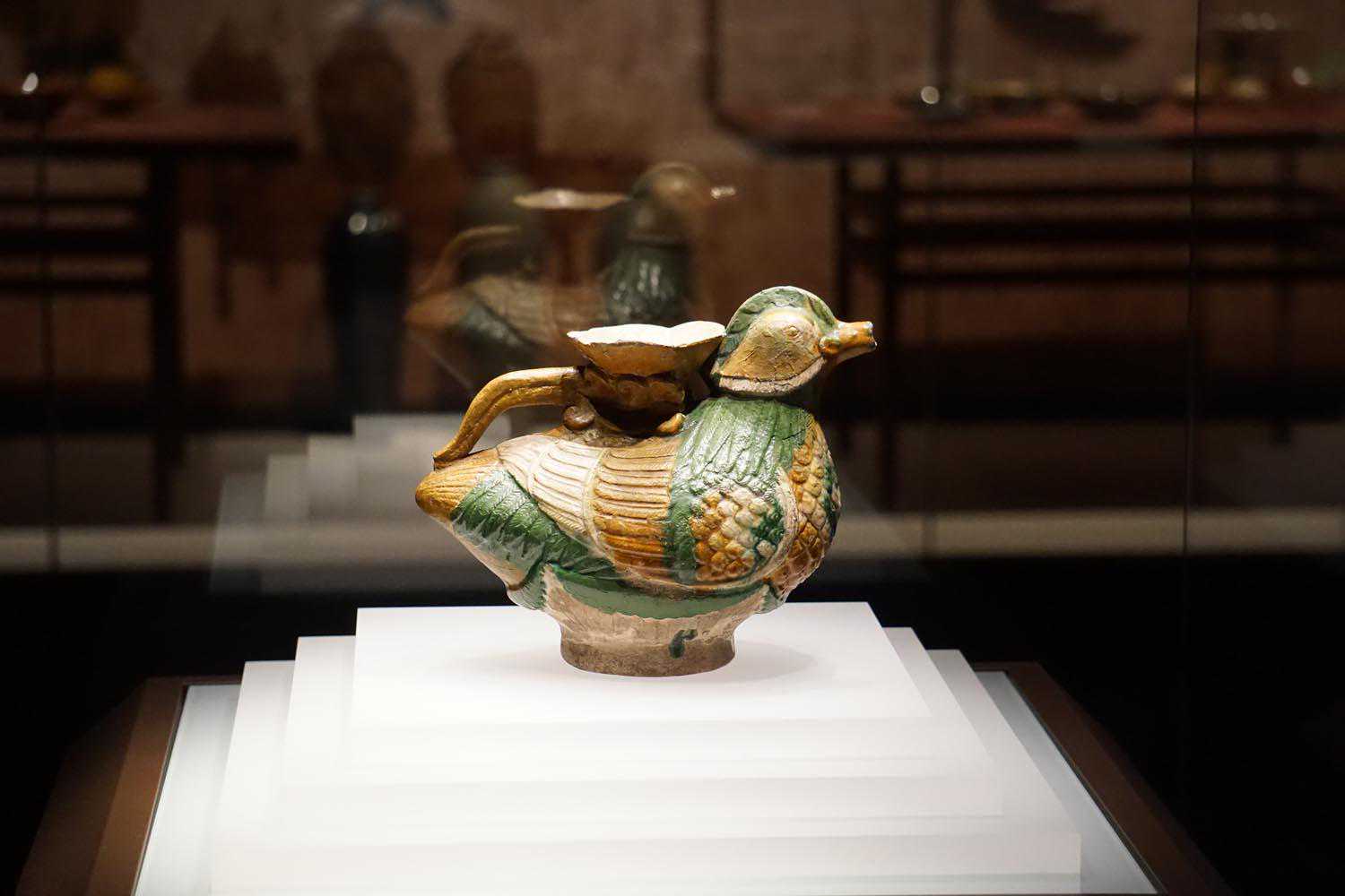 三彩釉鸳鸯形水壶