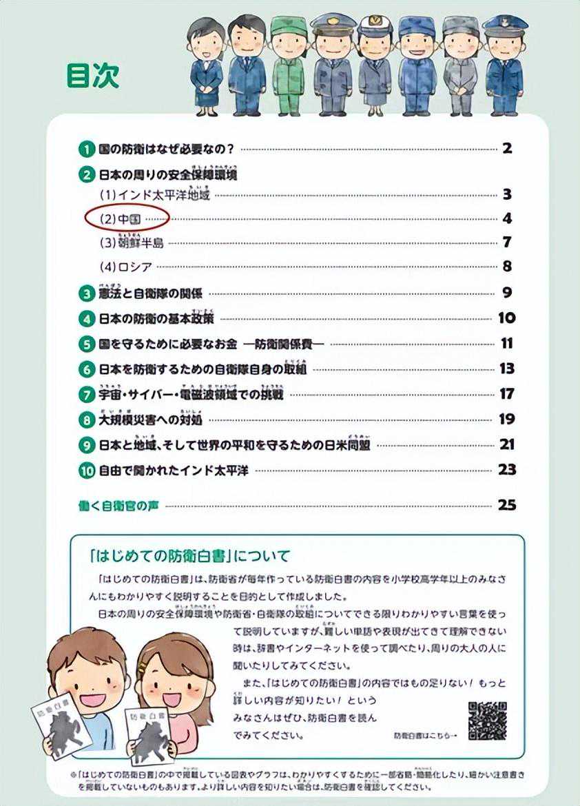 日本的《儿童版日本防卫白皮书》中多次将中国视作威胁,企图通过教科书,建立日本青少年儿童的“仇中情绪”