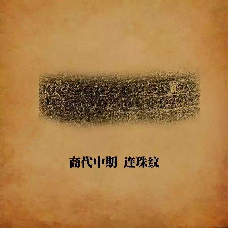 又称“联珠纹”,是由多个小圆圈横向排列构成的带状纹饰,这是青铜器中出现最早的纹饰之一,在二里头时期的铜爵和铜斝的腹部已经出现,商代比较流行,常用作界栏性纹饰。