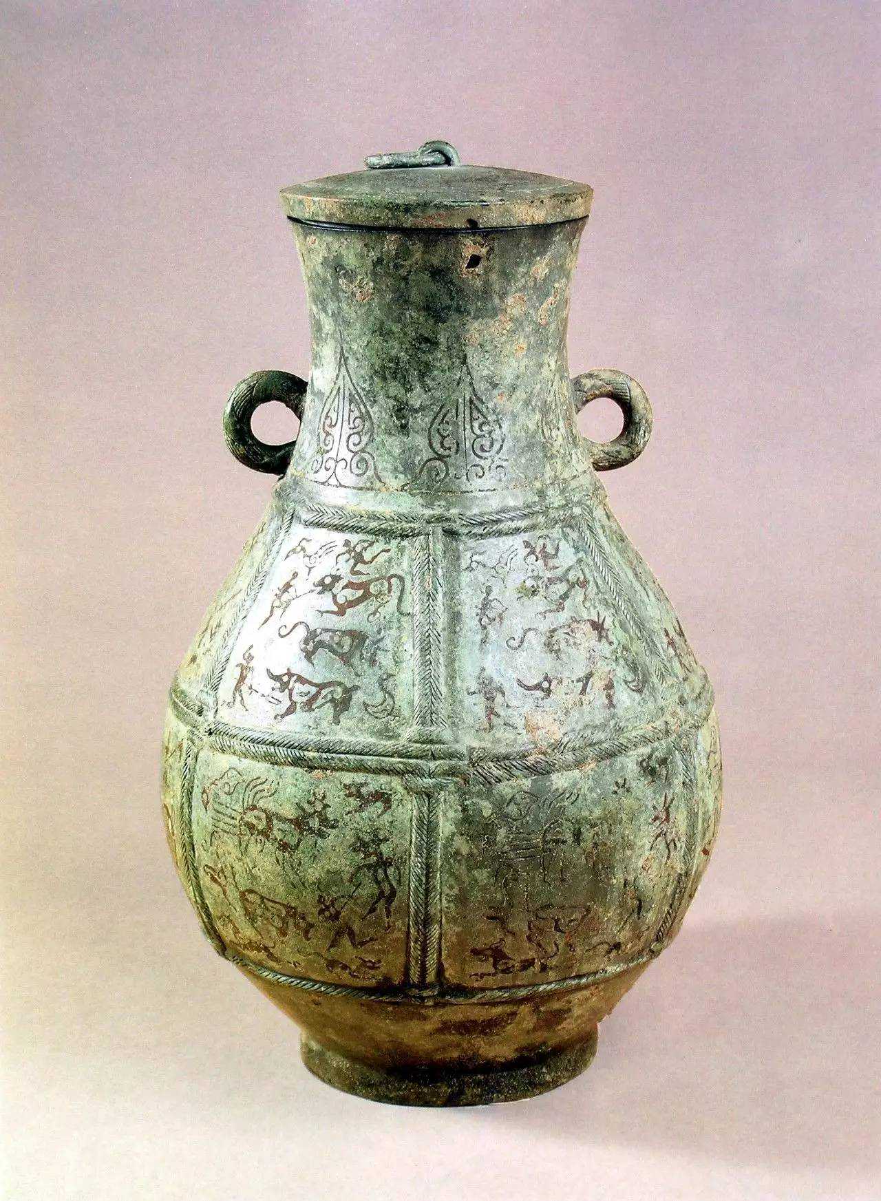 ▲嵌红铜狩猎纹壶战国早期河北唐山贾各庄出土