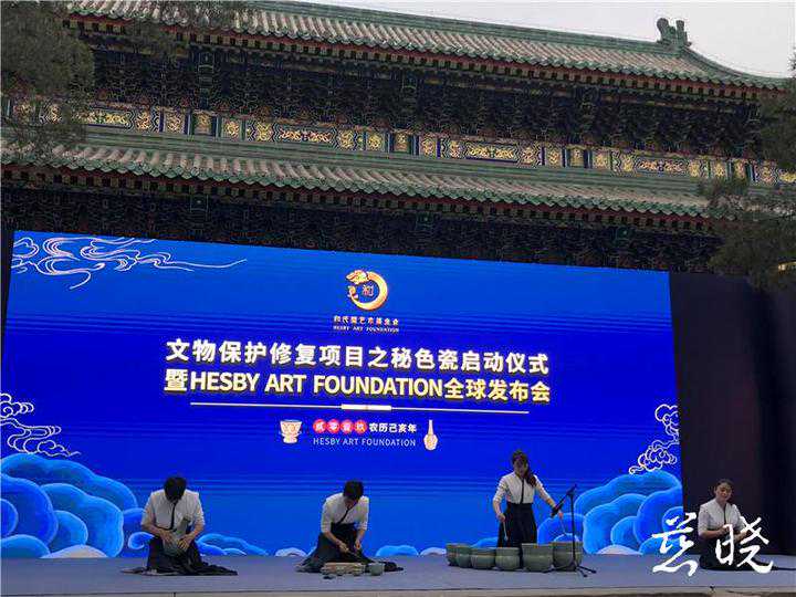 6月12日下午,文物保护修复项目之秘色瓷启动仪式暨HESBYARTFOUNDATION(和氏璧艺术基金会)全球发布会在北京圆明园举行。东京、伦敦、洛杉矶、纽约、墨尔本、多伦多、莫斯科……秘色瓷宣传片在全球12个金融中心城市LED大屏滚动投放一周,让世界看见秘色瓷的魅力。