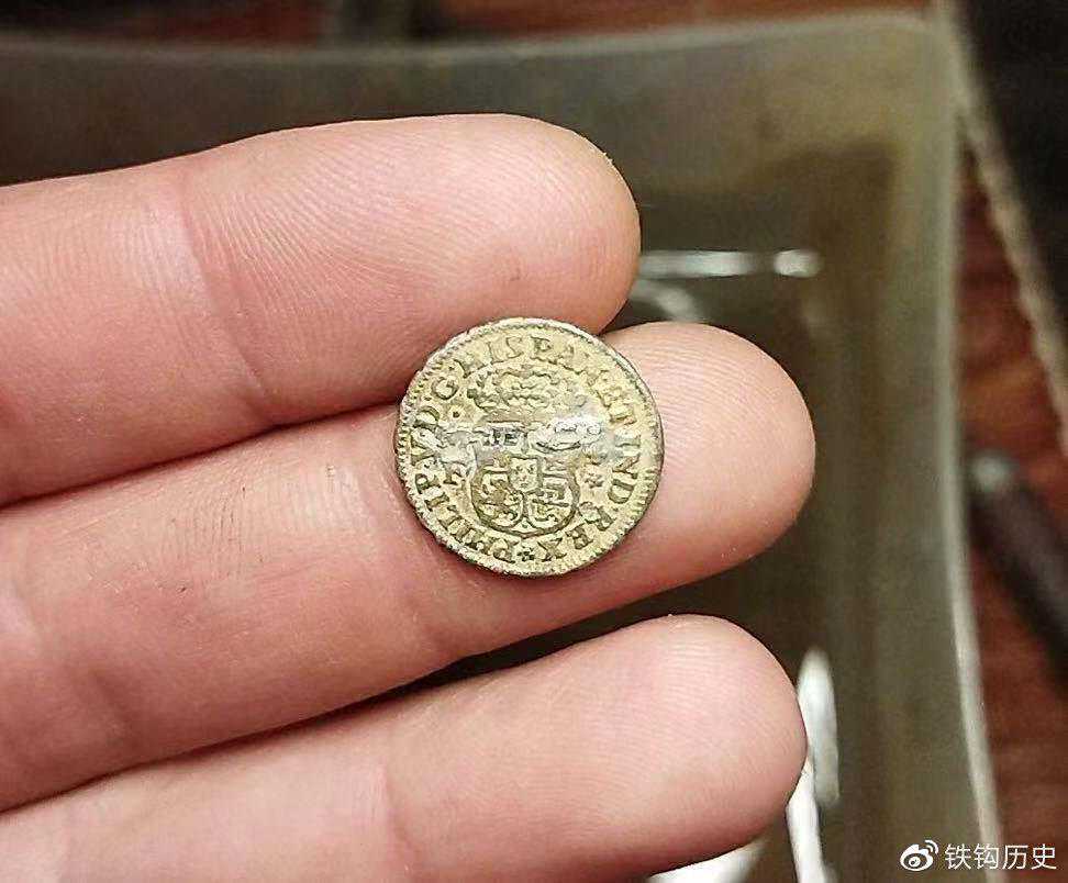“地球币”的背面是王冠覆盖的东西半球以及其山川和海洋。它们分别代表新旧两个世界。双球的下面是代表直布罗陀海峡的水波。其左右两个顶置皇冠的立柱是传说中的大力神海格力斯之柱。其实是直布罗陀海峡接口处的两个山峰。因为直布罗陀海峡连接地中海与大西洋,所以当时的欧洲人认为从地中海出了该海峡,就是未知世界。柱上卷轴铸拉丁文PLUSVLTR,意为“海外还有天地”,上方的拉丁文VTRAQUEVNUM(意为“合二为一”)与币中的双地球图案,寓意“东西半球为西班牙单独拥有”,下方为铸造年号及铸地国标记。